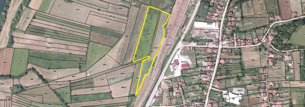 Površina: ukupne površine od 16.883 m2, katastarske čestice 558 (9.465 m2 ) i 559/2 (7.418 m2) u KO Dobrlјin