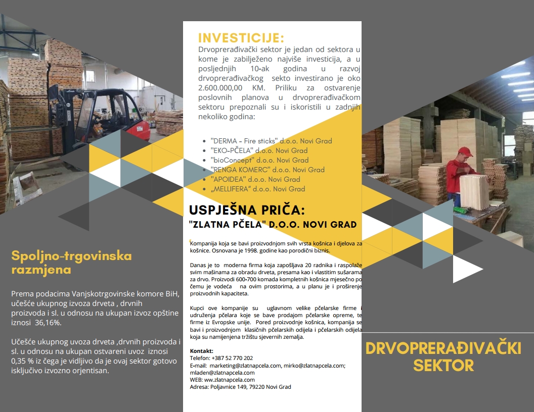 Prema podacima Vanjskotrgovinske komore BiH, učešće ukupnog izvoza drveta, drvnih proizvoda i sl. u odnosu na ukupan izvoz opštine u 2023. godini iznosio je 34,61%. Učešće ukupnog uvoza drveta , drvnih proizvoda i sl. u odnosu na ukupan ostvareni uvoz u 2023. godini iznosio je 0,37 % iz čega je vidlјivo da je ovaj sektor gotovo isklјučivo izvozno orjentisan.