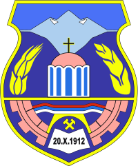 - u plavom polju u vrhu štita nalazi se amblem Republike Srpske i naziv Opštine,
