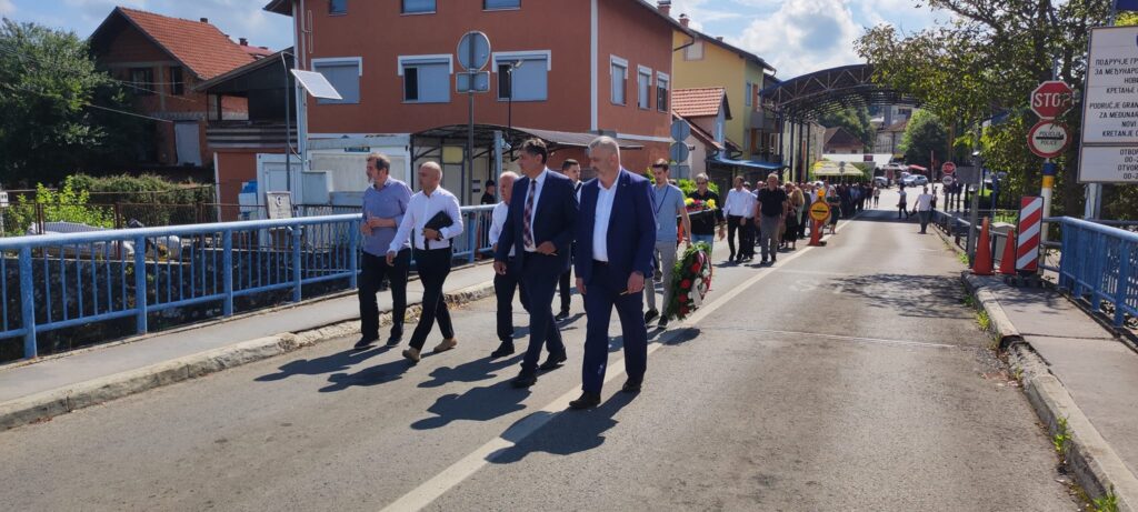 Nakon održanog parastosa okupljeni, predvođeni načelnikom Opštine Novi Grad Miroslavom Drljačom, zamjenikom načelnika Bojanom Lukačom, predsjednikom Skupštine opštine Zoranom Kukavicom i direktorom Dokumentaciono informativnog centra “Veritas” Savom Štrbcem uputili su se prema mostu na rijeci Uni, “mostu spasa” preko kojeg je tog tužnog avgusta prešlo oko 100.000 krajiških Srba.