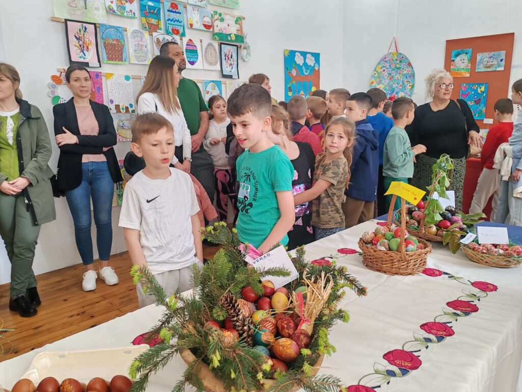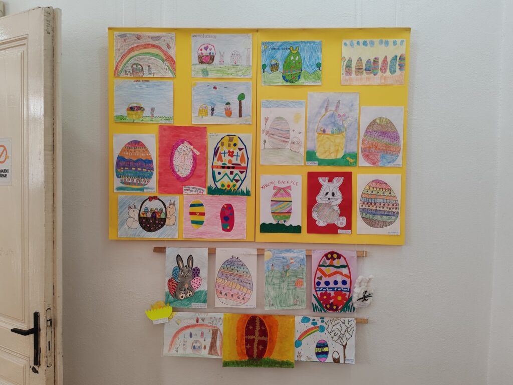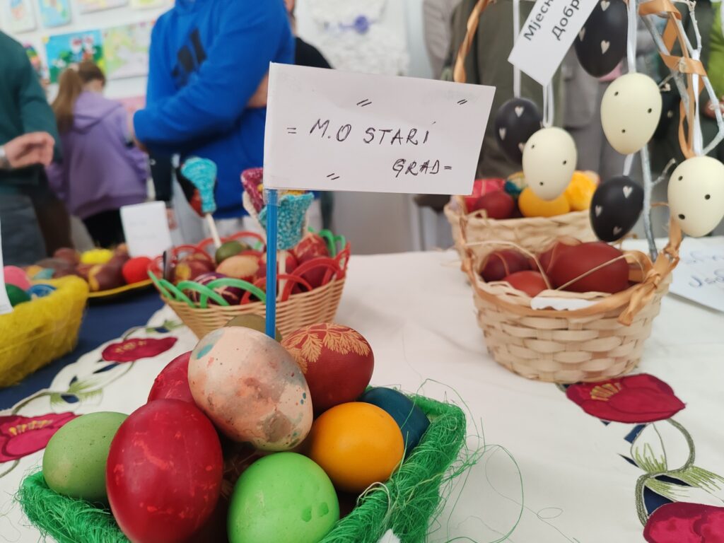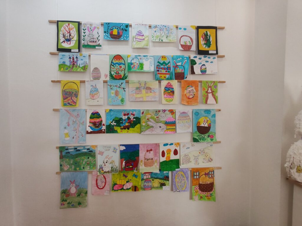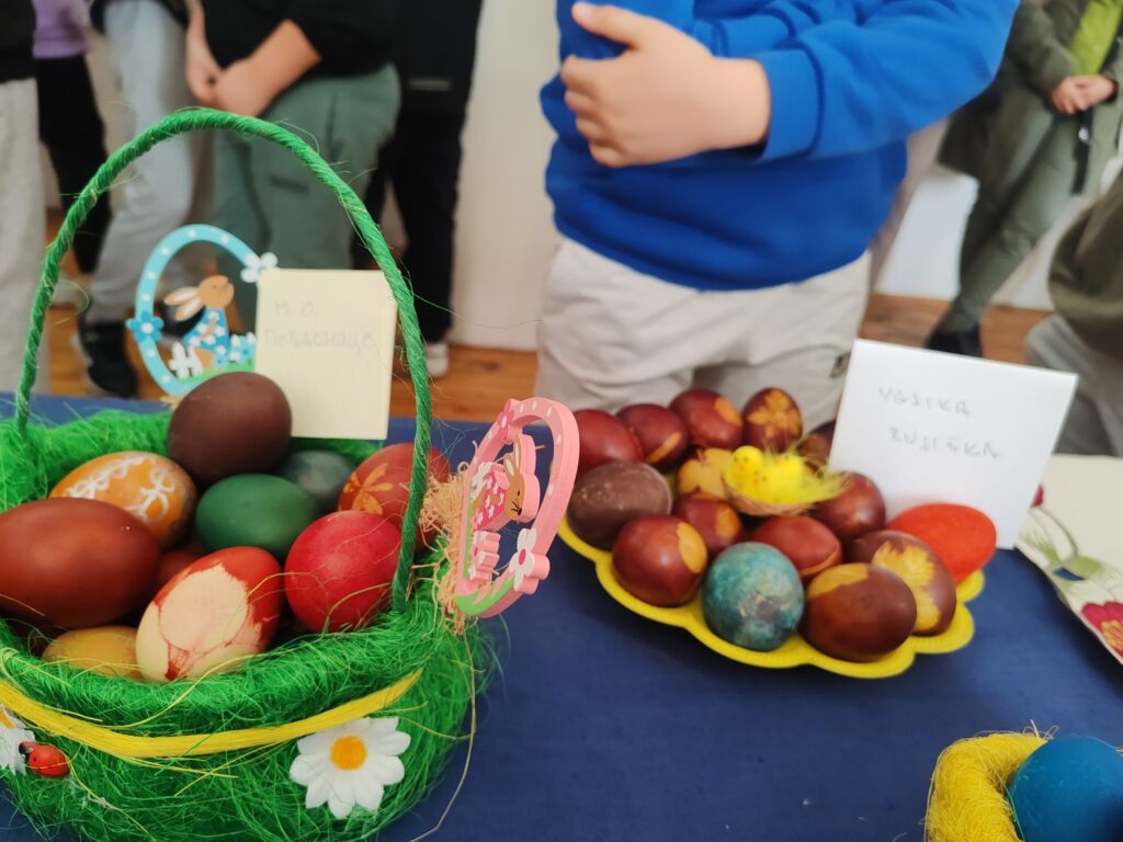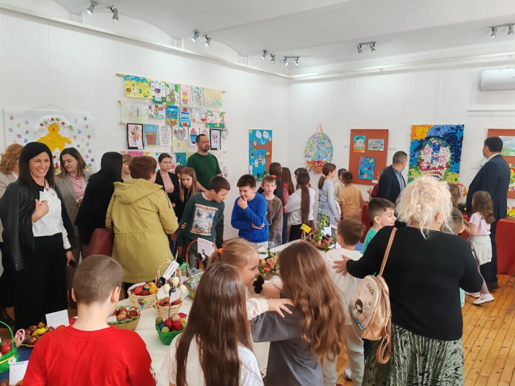 Posjetioci su danas mogli uživati u kreativnim likovnim radovima učenika osnovnih škola i ukrašenim vaskršnjim jajima.