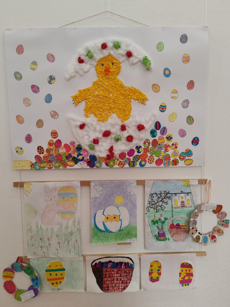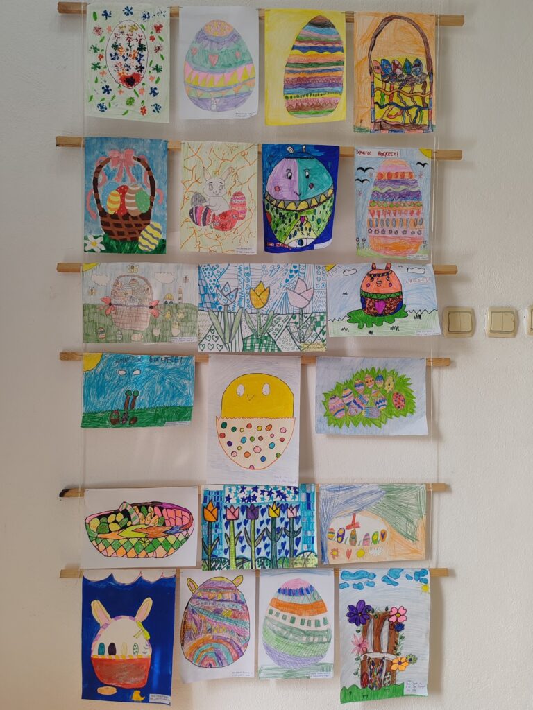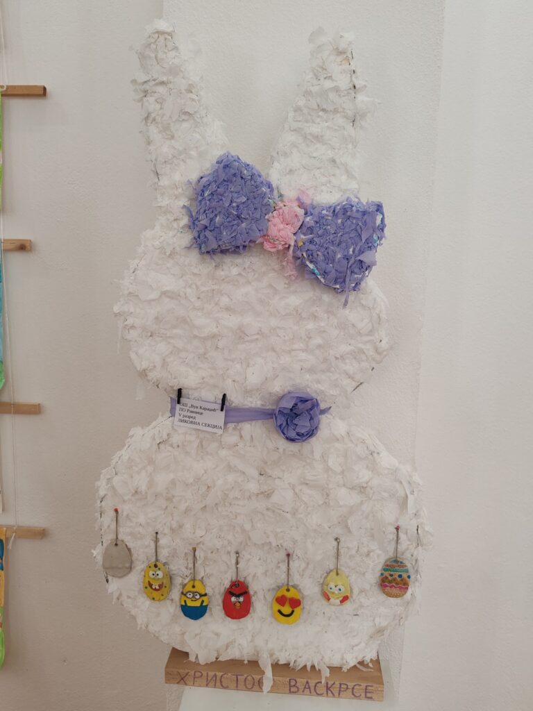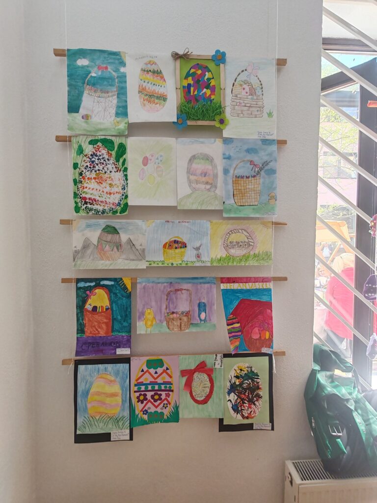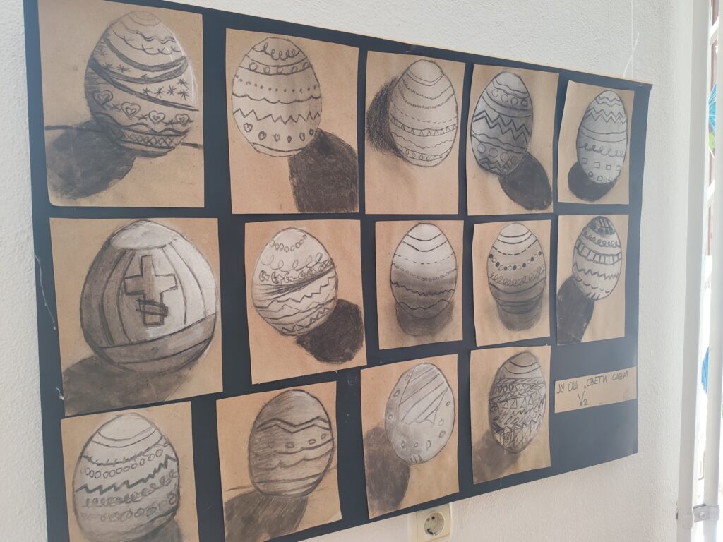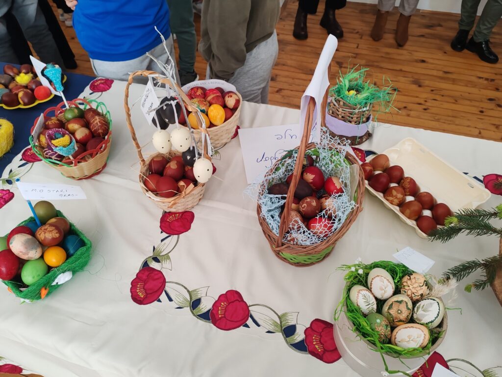 Posjetioci su danas mogli uživati u kreativnim likovnim radovima učenika osnovnih škola i ukrašenim vaskršnjim jajima.