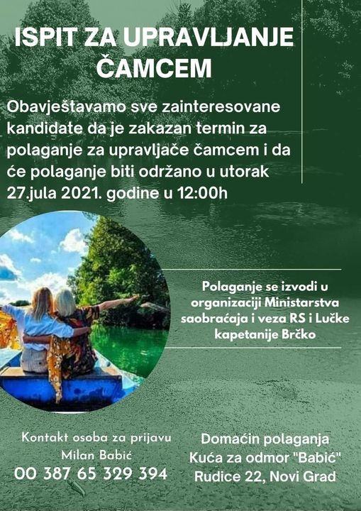 Polaganje ispita, koje se u Novom Gradu organizuje prvi put, organizuje Lučka kapetanija Brčko i Ministarstvo saobraćaja i veza Republike Srpske, a domaćin polaganja je kuća za odmor “Babić”, Rudice 22 Novi Grad.